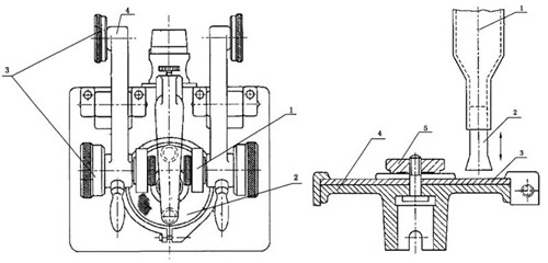 4.容器:上端开口,能容纳至少200g磨料。容器底部带有高度可调节的落砂管,落砂管底部距离试件表面(10±3)mm,并能迅速关闭。